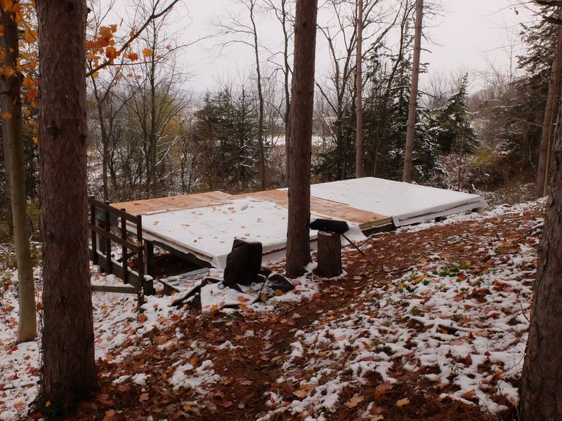 Coming up against onset of winter. I will cover the whole thing with a good tarp until spring.