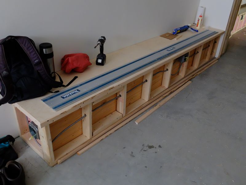 We did not put any wiring into the perimeter wall – simply because we couldn’t plan that far ahead. We assumed we would do surface wiring of some kind, which turned out to be true. But we could have made things a little easier had we planned some conduit into the wall structure – which was added later with a little more trouble. Ditto for wiring for audio gear.